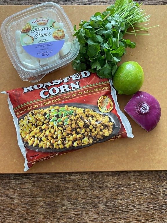 - 1 cup Trader Joe's Frozen Roasted Corn, defrosted (Or roast your own corn on the grill and shave off the cob!)