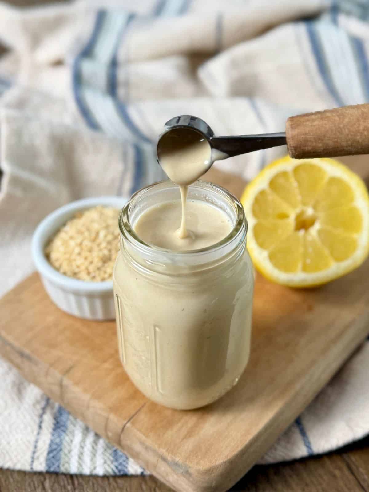 This dressing is a trip to the Eastern Mediterranean in one bite. Tahini, honey, lemon and salt make the perfect balance of savory and sweet. This is the perfect dressing to drizzle over a bed of greens, falafel or roasted chicken.